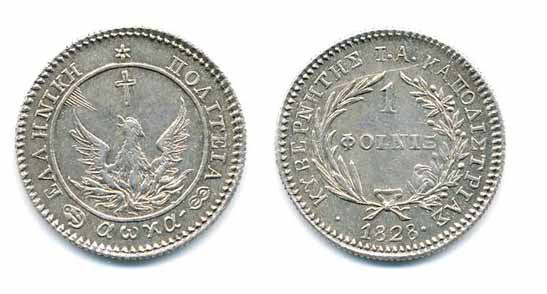 Der Phönix war die erste Währung des modernen griechischen Staates.1828 wurde sie eingeführt und war in 100 Lepta ( Bezeichnung der altgriechischen Sprache für die Scheidemünzen, also die kleinsten, nicht durch ihren Materialwert gedeckten Münzen des Münzsystems.)