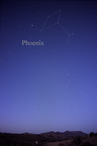 Den Phönix gibt es auch als Sternbild , er hat ein wenig markantes Bild und liegt nördlich des hellen Sterns Achernar im Eridanus. Leider kann man nie von seiner südlichen Lage von Deutschland nicht sehen.