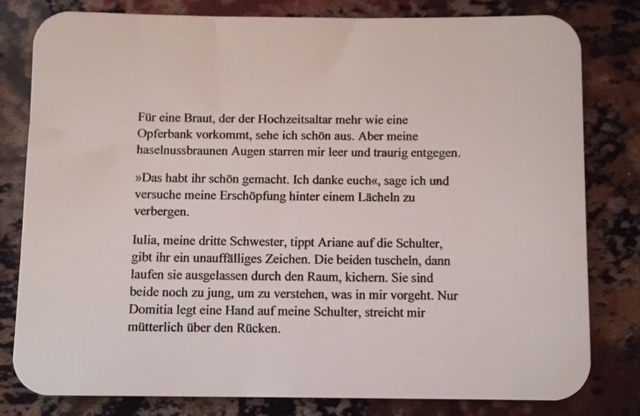 Letzte Woche habe ich schöne Überraschungspost erhalten von Autorin Karolyn Ciesau. Sie veranstaltet eine Aktion zu erscheinen des ersten Buches ihrer Chroniken der Zeitenwanderer. Eine Art Social Media Schnitzeljagd.